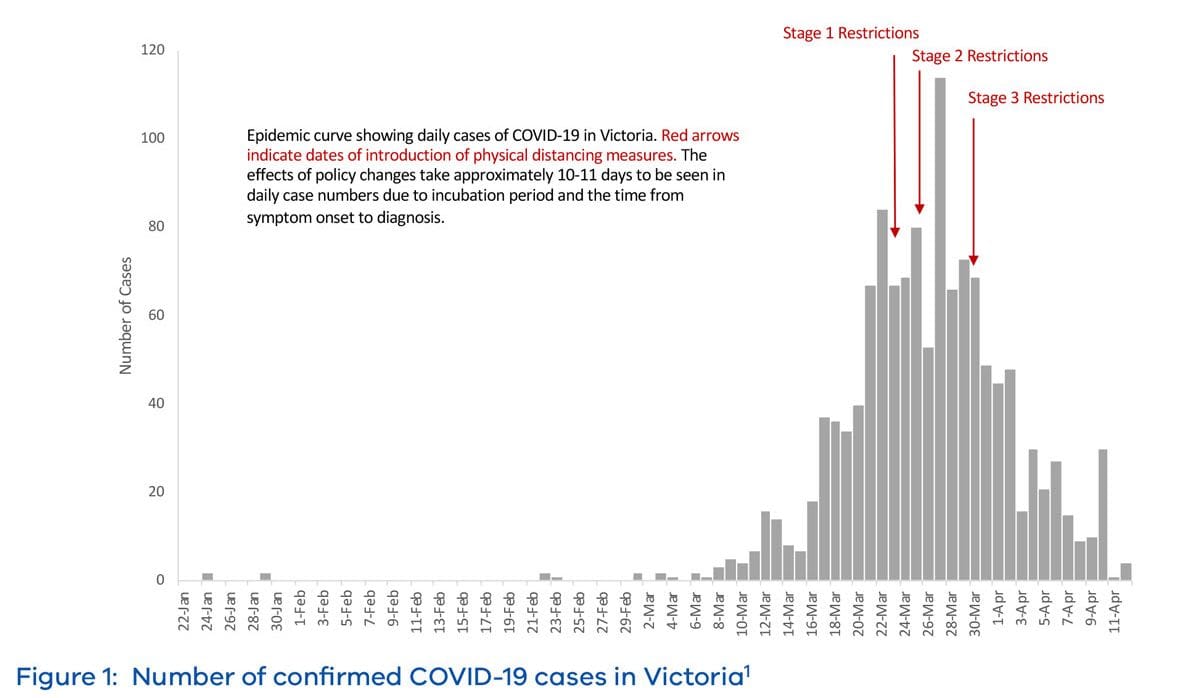 It’s measured by trajectory, and the trajectory of COVID-19 in Victoria has changed dramatically since Stage 3 restrictions were introduced in late March.