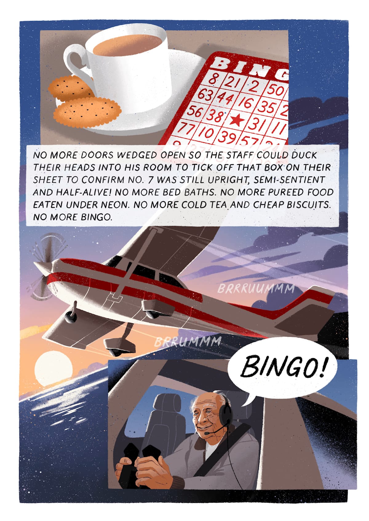 The same two aged care residents who had their stories reimagined for the first paper – “Gurney” and “Patricia” – are now illustrated, and revisited. Gurney (a pseudonym), who is 90, originally confessed he felt lonely all day – but joked it was “no more than once a day”.