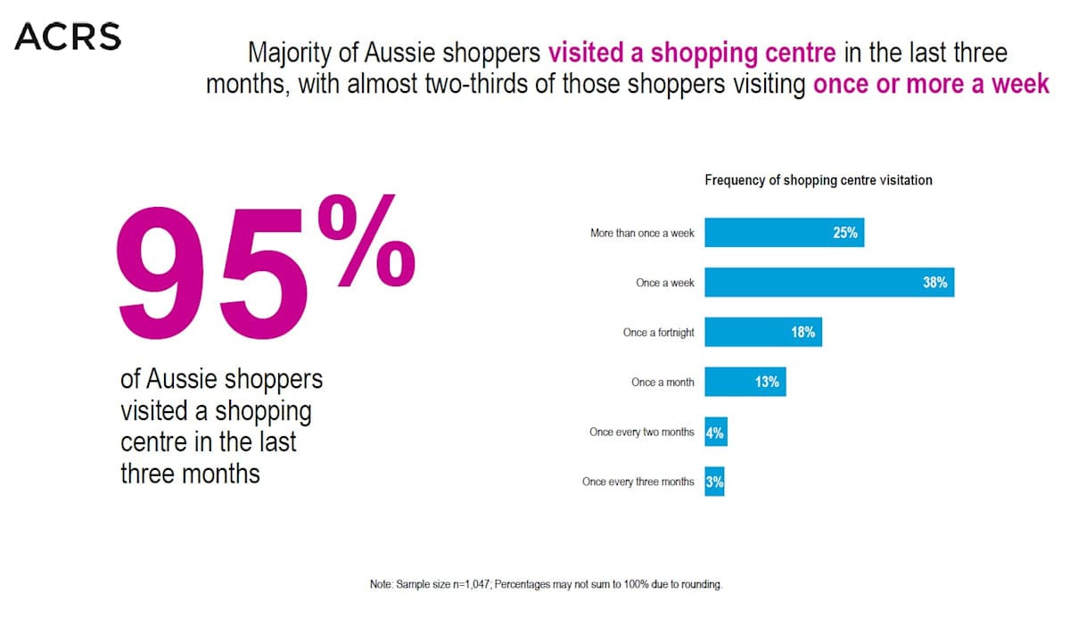We asked Aussie shoppers about their safety and security experiences at shopping centres, and the results were predominantly positive. The vast majority of shoppers visited a shopping centre in the past three months (95%), with almost two-thirds visiting once or more per week (63%).