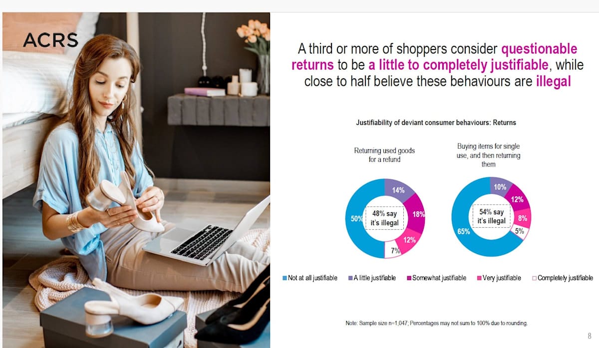 Finally, a third or more of shoppers consider questionable returns to be a little to completely justifiable. Consumers reported it’s a little to completely justifiable to buy items for single use and then return them (35%), and return used goods for a refund (51%).