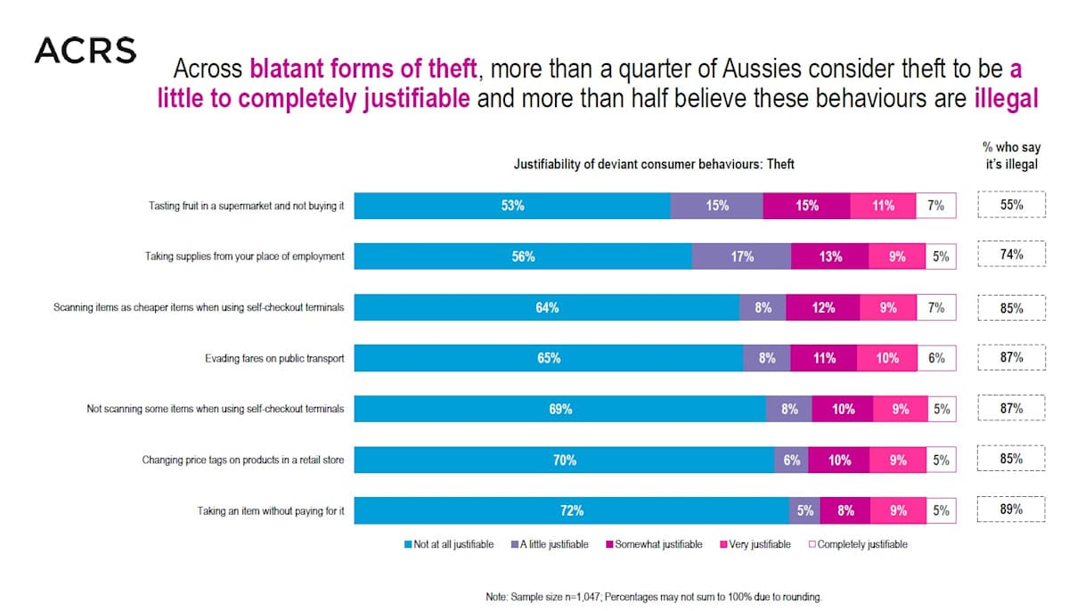 While some shoppers believed these forms of retail theft to be justifiable to some extent, most (between 85% and 89%) acknowledged that these behaviours are illegal.