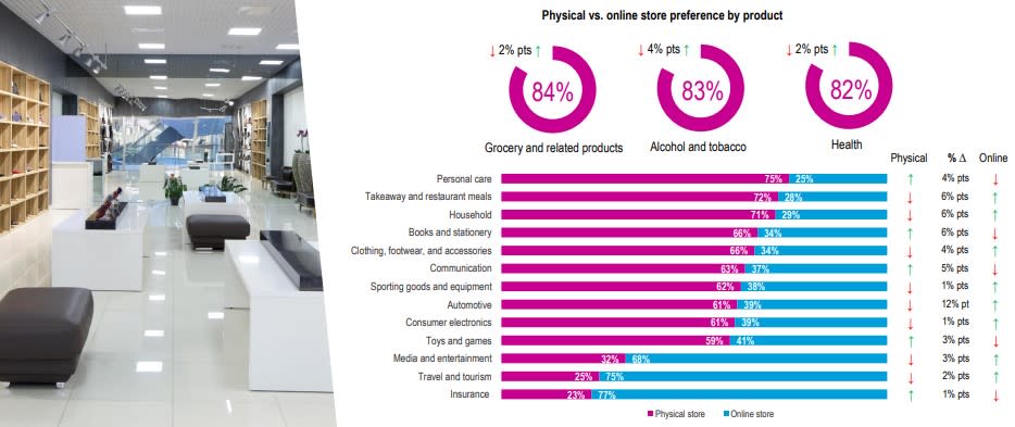 If they had to choose, Aussie shoppers preferred to purchase from physical stores across the majority of product categories. However, exclusive preference for online increased across two-thirds of product categories, including the top three brick-and-mortar favourites, namely grocery and related products, alcohol and tobacco, and health products.