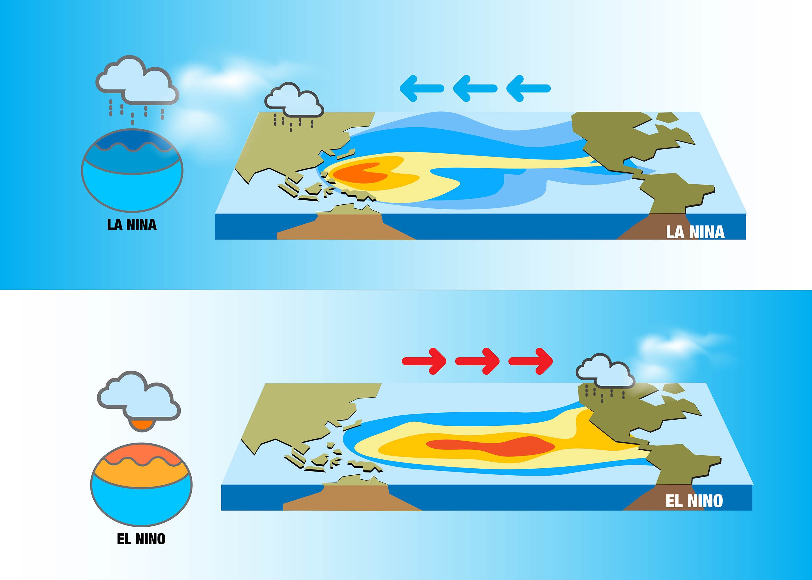 This is the cycle of Pacific Ocean temperature patterns that oscillates between La Niña, when the ocean waters near the Maritime Continent are warmer than normal, and El Niño, when the ocean waters near the Maritime Continent are colder than normal.