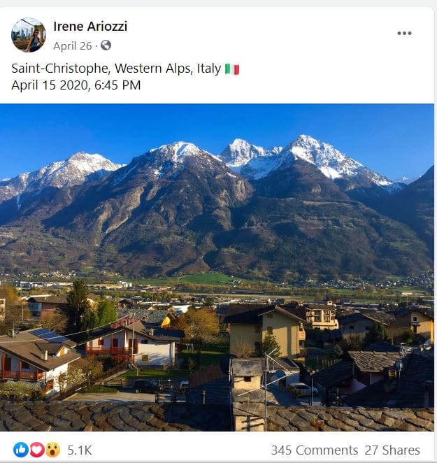 Comments on other posts show that this virtual community is indeed global. Consider the photo below posted by Irene, an Italian radiologist, on 15 April of Saint-Christophe, Western Alps, Italy.
