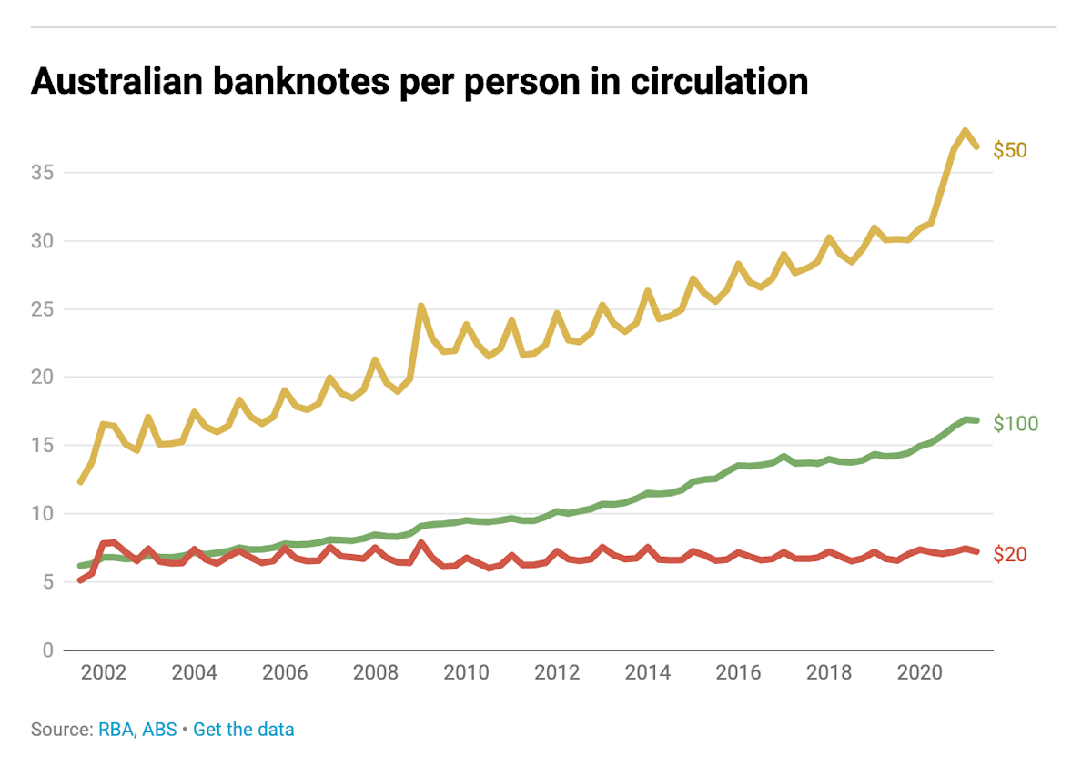 Whereas in much of the rest of the world the use of cash is shrinking, in Australia there are more banknotes in circulation as a proportion of the economy than at any time since the introduction of decimal currency in 1966.