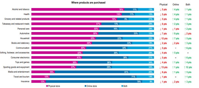 Additionally, the proportion of Aussie shoppers who purchased exclusively online increased in nearly two-thirds of product categories.