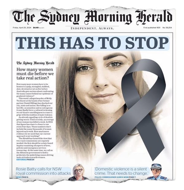 Four months into 2024, 33 women in Australia have been murdered, largely by a man they knew.