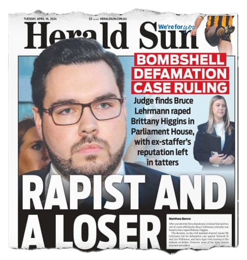 In Australia, we had a glimmer of hope on 15 April when former federal political staffer Bruce Lehrmann lost his civil defamation case against Network Ten (and journalist Lisa Wilkinson).