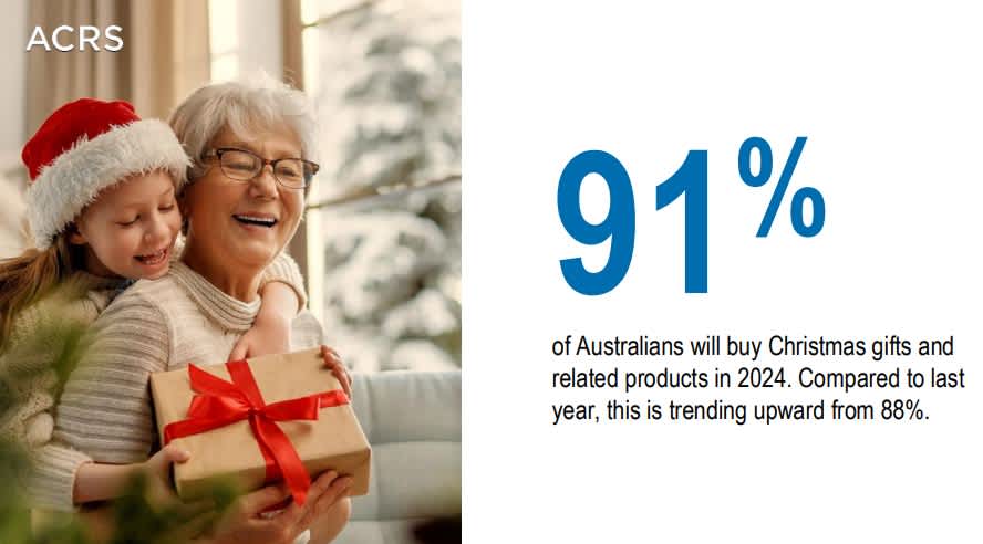 It seems Aussies are starting to feel the Christmas spirit, with consumer sentiment rising. The Westpac-Melbourne Institute Consumer Sentiment Index rose 5.3% to 94.6 in November, up from 89.8 in October. This is also reflected in our latest research, which shows the majority of Australians (91%) are planning to buy Christmas gifts and related products this year.