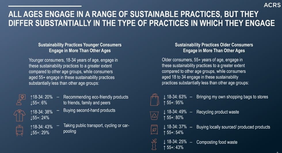 Australian shoppers of all ages engage in a range of sustainable practices, but they differ significantly in the types of practices in which they engage.