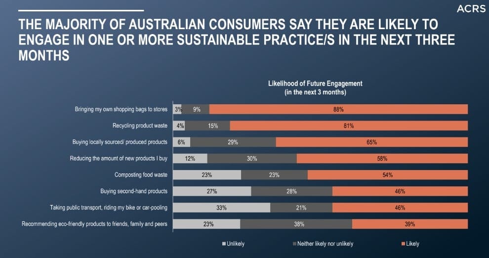 From a lifestyle perspective, most Aussie shoppers are engaging with sustainable lifestyle practices and are committing to them.