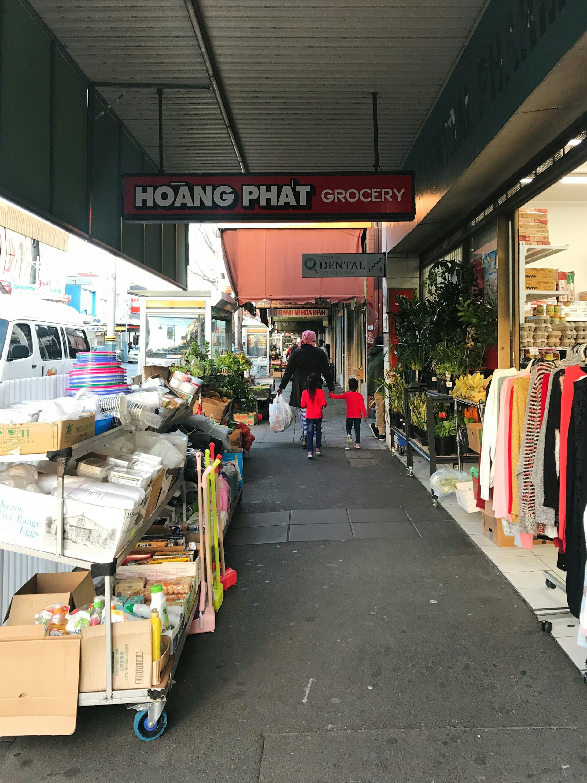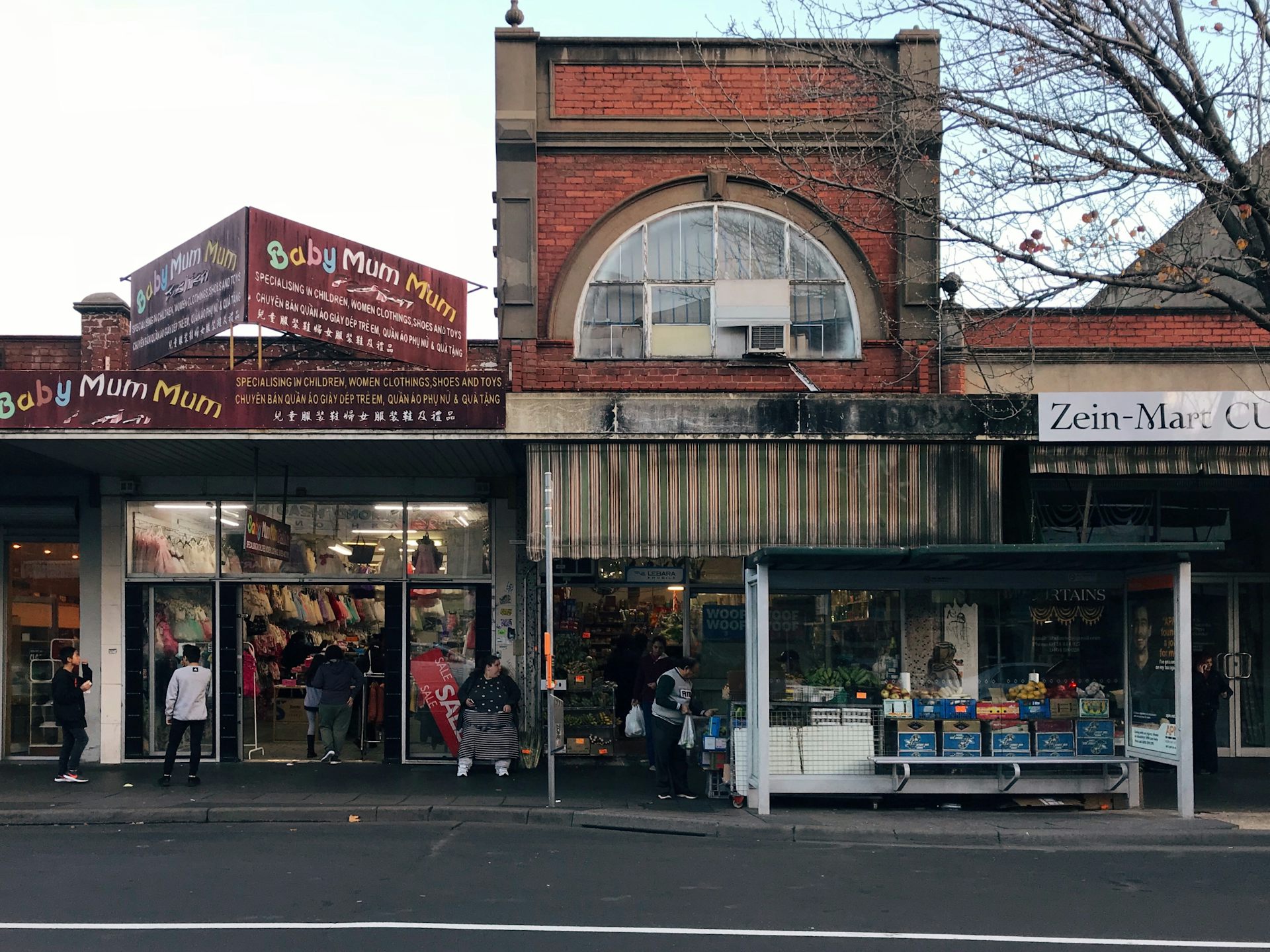 The weekly Mini Green Market on the corner of Hopkins and Leeds streets was born out of a longstanding tradition of informal street vending in Footscray. Despite some conflict and uncertainty in 2018, vendors can use a wide portion of the footpath to sell their wares in a regular organised event.