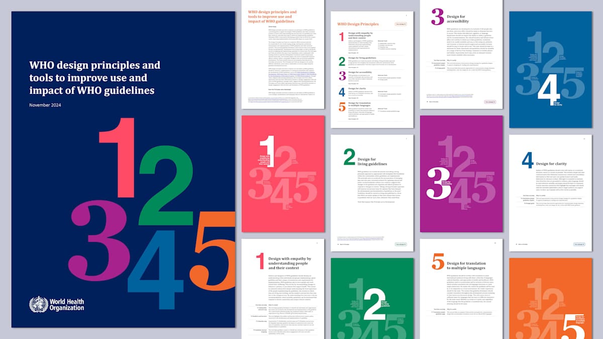 The toolkit also incorporates specific communication design tools to support designers in laying out guidelines in formats that are easier to navigate, including an annotated sample guideline chapter, design guide, and a sample guideline page translated into the six official WHO languages.