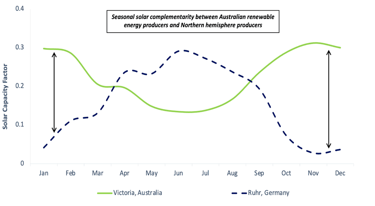 There’s a significant demand-supply mismatch in the northern hemisphere in winter, when local energy demand surges and renewable supply plunges. This large gap could be filled by Australian solar-powered ammonia, which peaks during that time.