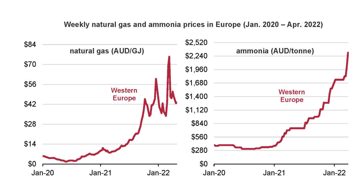 The cost of fossil gas and coal prices have skyrocketed around the world, including in Australia. These rising fossil fuel costs are flowing onto major commodities, including ammonia.