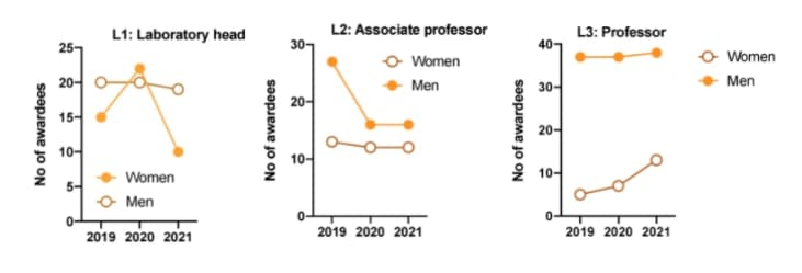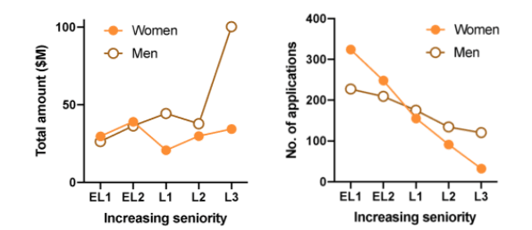 Indeed, at the most senior level (L3), more than three times the number of men are funded than women.