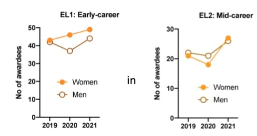 At the early career levels (EL1 and EL2), there’s equitable distribution of Investigator Grants funding (Figure 4).