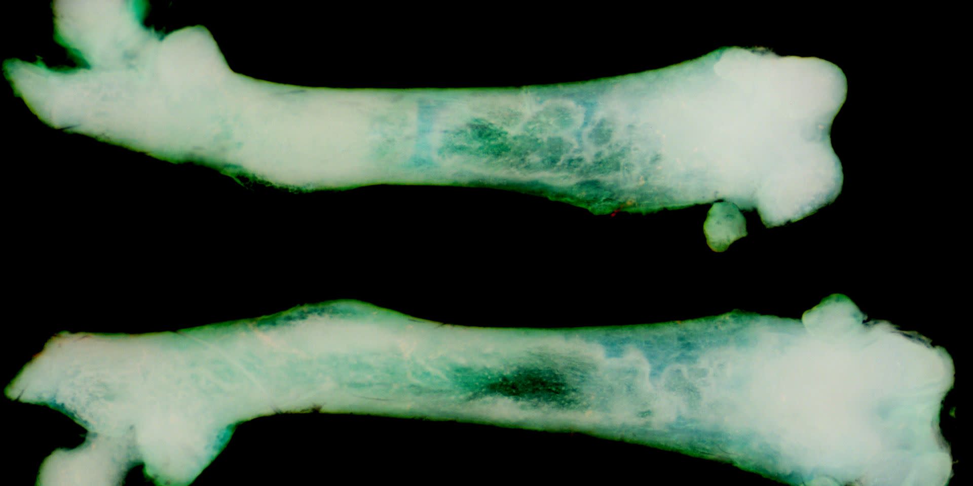 To explore more in vertebrates, the authors engineered mice cells, shortly before birth, specifically in bone-forming cartilage cells in one hind limb, but not the other. By suppressing only half of the bone-forming cartilage cells in the same hind leg, they were able to examine the responses of unsuppressed cells on the same side.