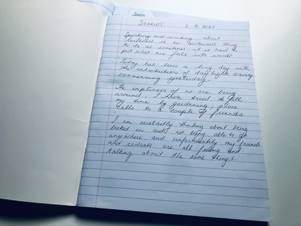 The writers were given 10 prompts and asked to make entries twice a day, but were also told they could ignore the prompts and just write about whatever they were feeling. One such prompt was “What was it like living alone today?”; another was “What have I done today? What do I feel about it?”