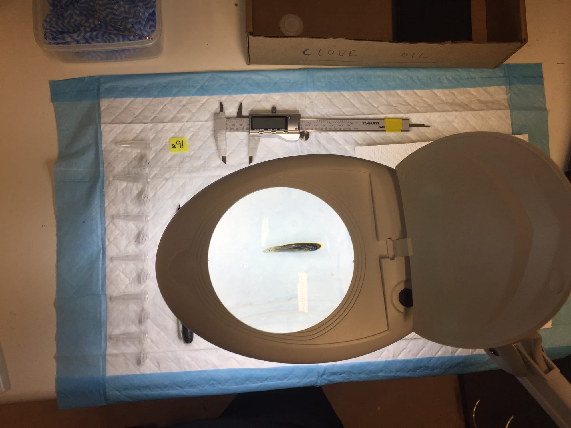 Exposed: testing the mosquito fish.