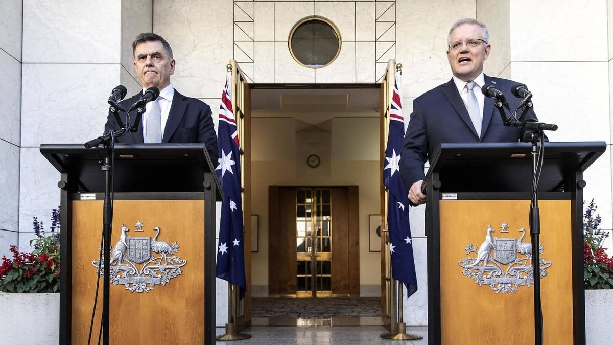 It’s 8 May, and Morrison is giving one of his regular press conferences updating Australians on the COVID-19 pandemic. There’s a lectern in front of him, and the Chief Medical Officer is by his side.