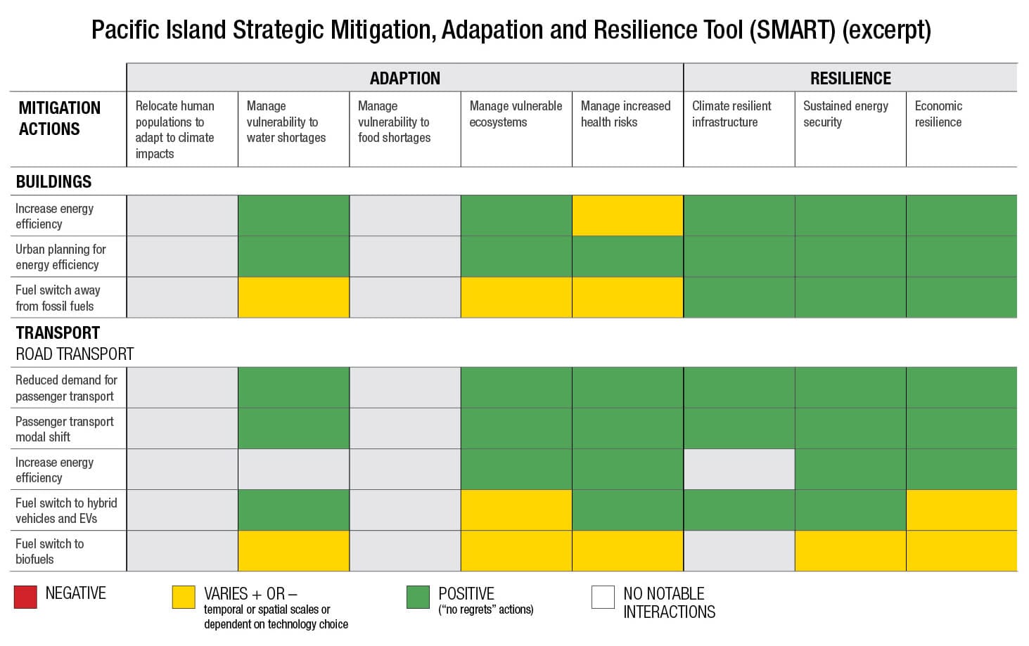 So, ClimateWorks Australia developed a Strategic Mitigation Adaptation and Resilience Tool (SMART) for planning to address these challenges, through a better understanding of the links between mitigation actions and adaptation or resilience outcomes, specific to Pacific Islands.