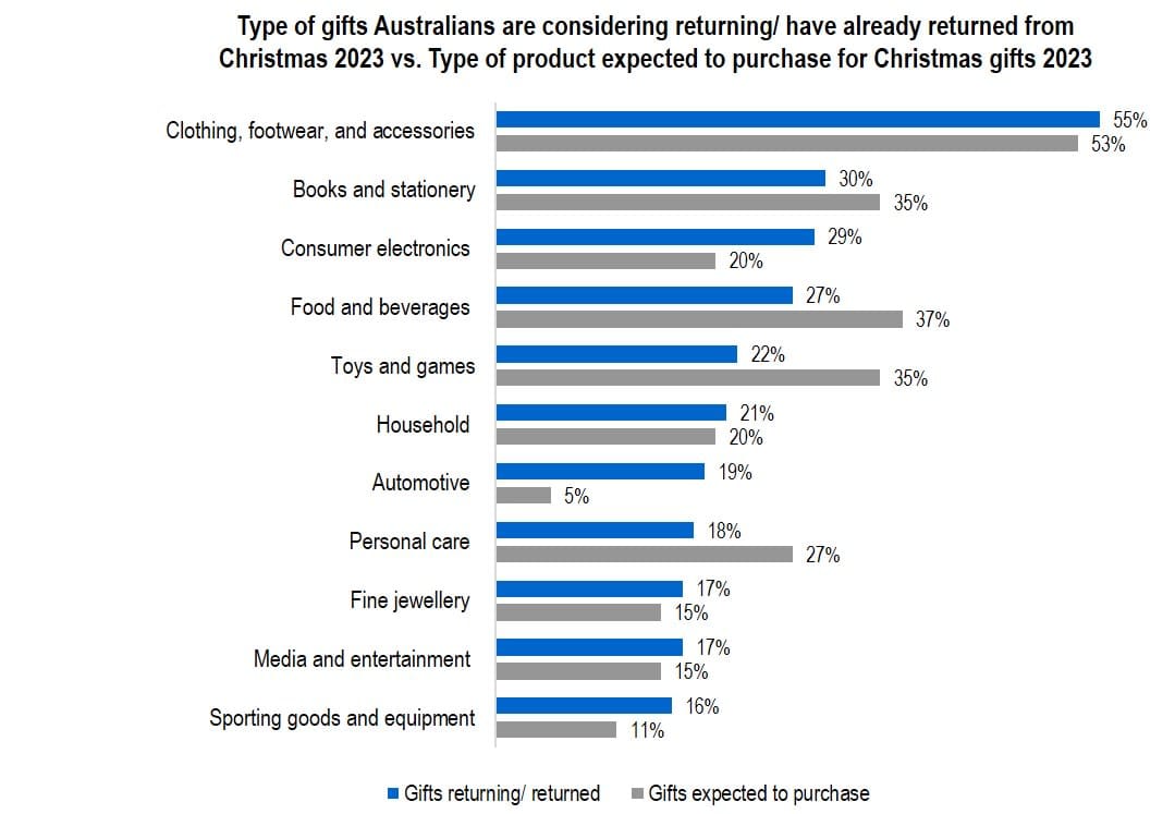 In fact, two-thirds (67%) of Australians aged 18 to 24 who were planning to or have already returned a gift from the 2023 Christmas period were returning this type of gift.