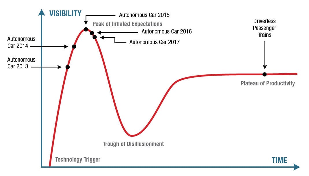 The hype, at any rate, viewed within the theoretical framework of the Hype Cycle, has already entered the trough of disillusionment after reaching a peak of inflated expectation in 2015.