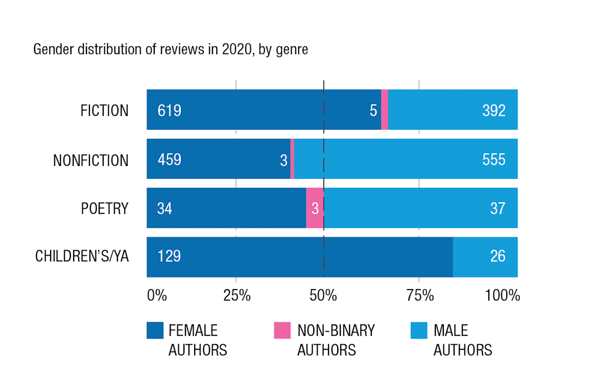 “We count the genre of books reviewed, and we've noticed that women critics get a large proportion of the fiction reviews in the outlets that we survey, and also children's and young adult literature by women is reviewed strongly,” Dr Harvey says.