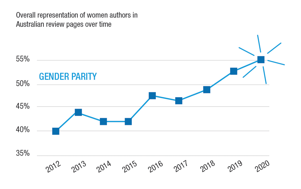 “It’s hard to get a figure on how many new books by women get published each year in Australia, but women constitute about 65% of today’s Australian authors total. So if you measure this against the reviewing of women authors in our publications surveyed, it hasn't yet reached that line.”